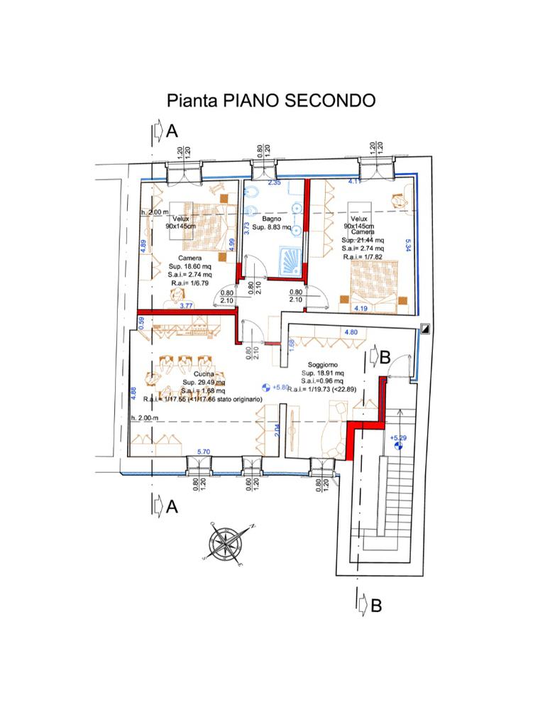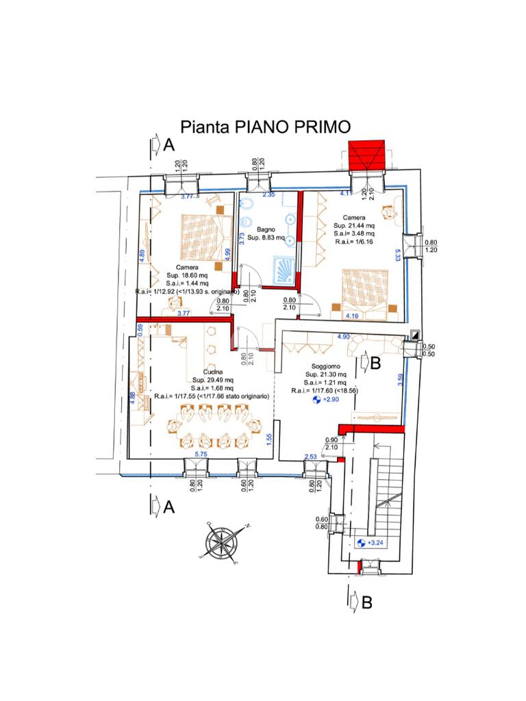 Attualmente la proprietà è costituita da due corpi principali con locali annessi comunicanti, che contano: due ingressi separati con corridoio di accesso, due soggiorni-cucina abitabili, due bagni, quattro camere da letto matrimoniali, scale interne, una cantina con volta a botte in pietra, due ripostigli e infine due depositi di cui uno ad uso fienile con altezze fino a 5,06 mt e 6,70 mt dove è possibile ricavare un soppalco.