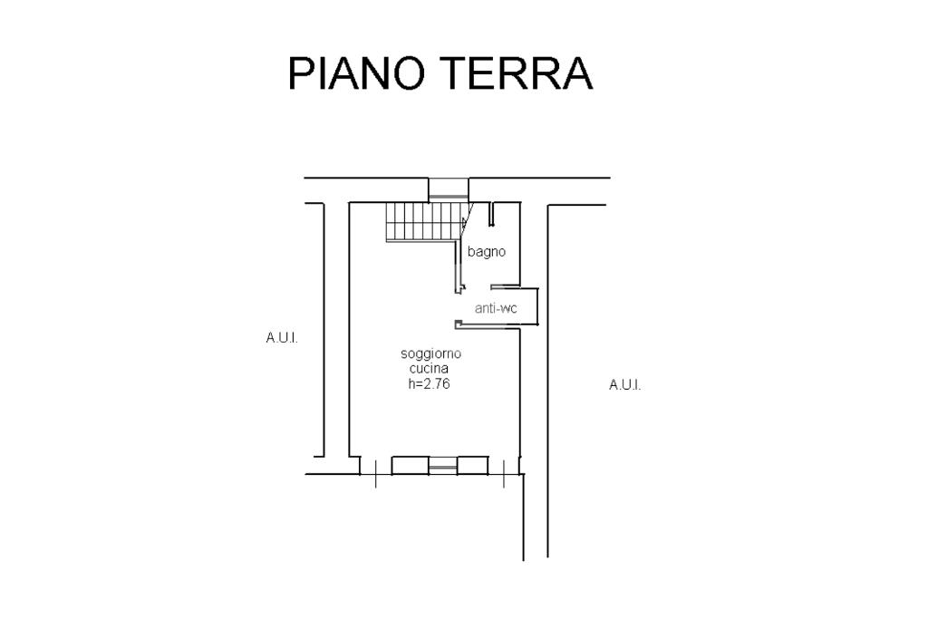 Al piano terra si trovano un accogliente soggiorno con cucina a vista, ideale per momenti di convivialità, e un ampio bagno con doccia e anti-bagno.