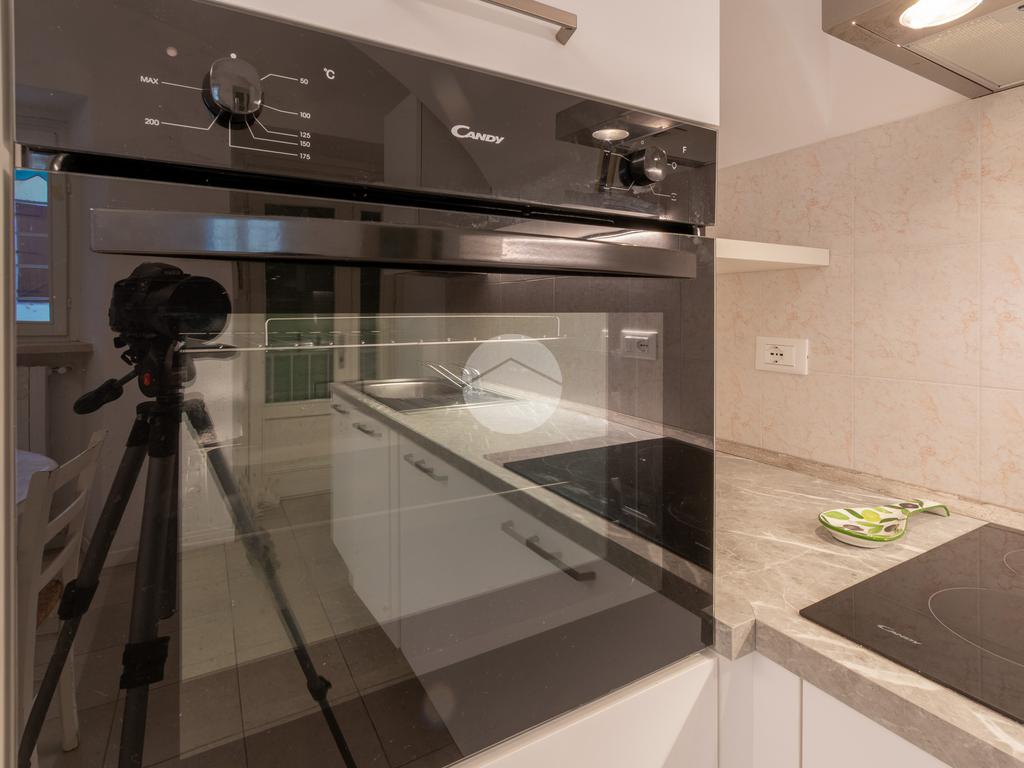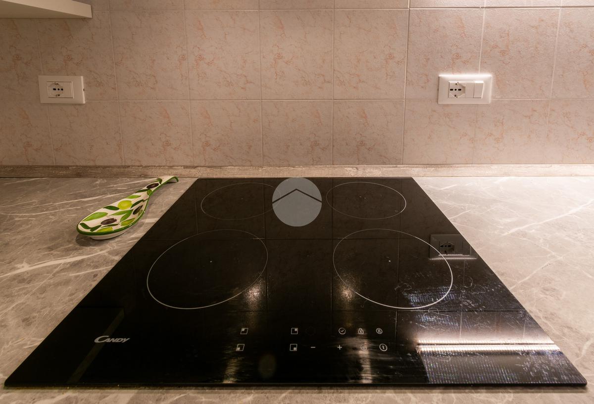 -- cucina attrezzata con elettrodomestici (piano cottura ad induzione, forno, lavastoviglie e frigorifero ad incasso, marca Candy);